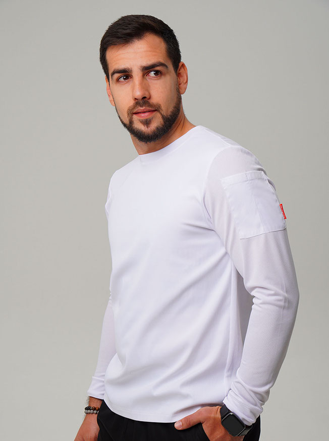 Поварской китель-футболка для мужчин и женщин, белого цвета. Профессиональная ткань прекрасно зарекомендовала себя в поварской одежде.