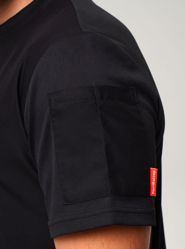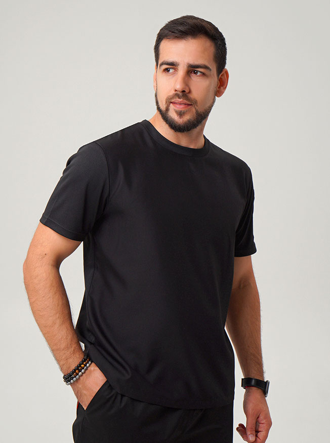 Поварской китель-футболка для мужчин и женщин, черного цвета. Профессиональная ткань прекрасно зарекомендовала себя в поварской одежде.
