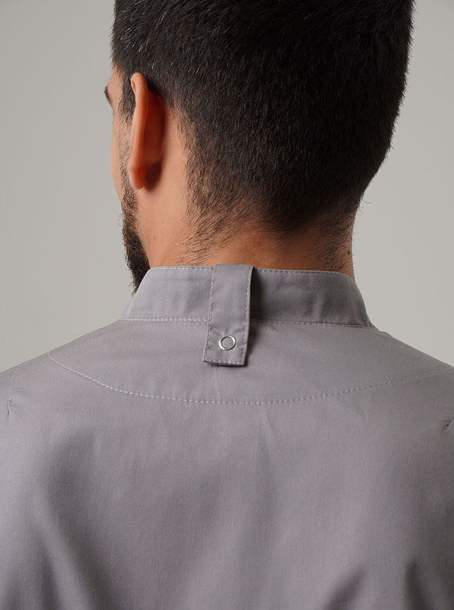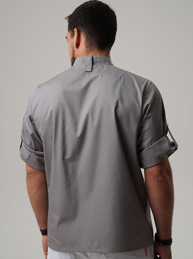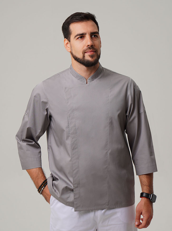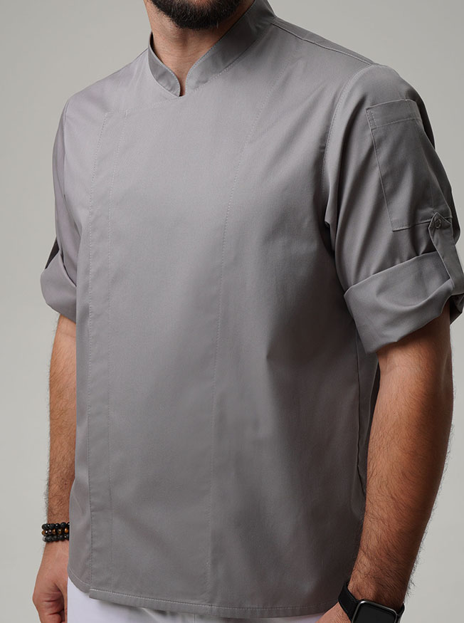 Поварской китель-футболка для мужчин и женщин, серого цвета. Профессиональная ткань прекрасно зарекомендовала себя в поварской одежде.